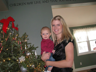 Therese is such a good sport to watch the boys 2 days this week for us. We went to a Japanese steak house w/ some friends the other day...I'll have to post those pictures...they're pretty neat. Like our dwarf-Christmas tree? Kinda looks funny in the picture...meant to crop it down, but oh well. :) Madeline's expressions crack me up...she's pretty sober. Therese got a little smile there!